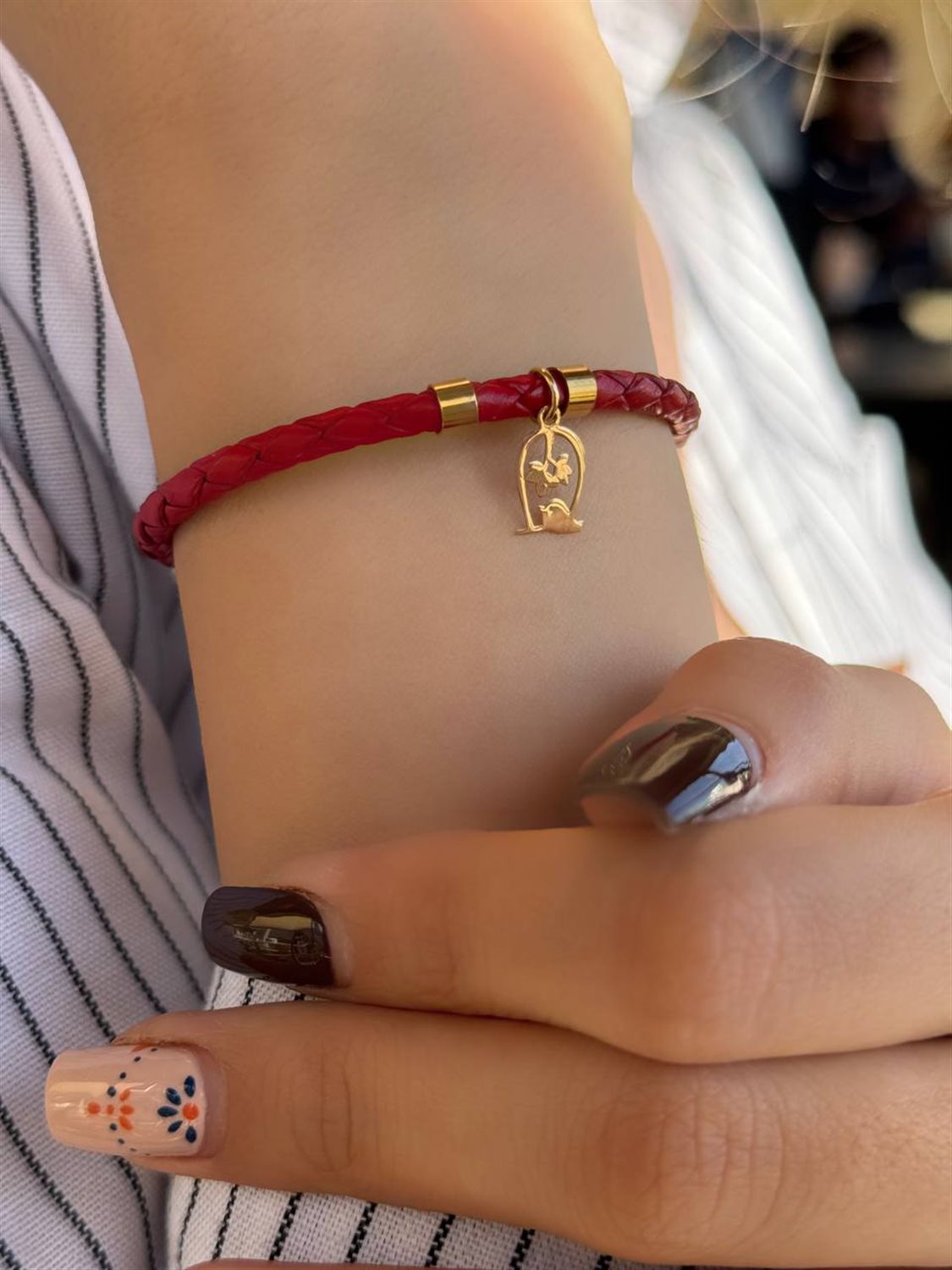 _دست ساز و ساخته شده از طلای 18 عیار (750) _ابعاد حدودی پلاک: 1cm x0/8cm _رنگ طلا:زرد _نوع چرم: چرم طبیعی _قیمت چرم طبیعی: 450000تومان _سایز: نرمال(مناسب برای دورمچ 14 تا 16/5سانتی متر) _قابل ساخت و سفارش با وزن و ضخامت بیشتر( به صورت سفارشی)