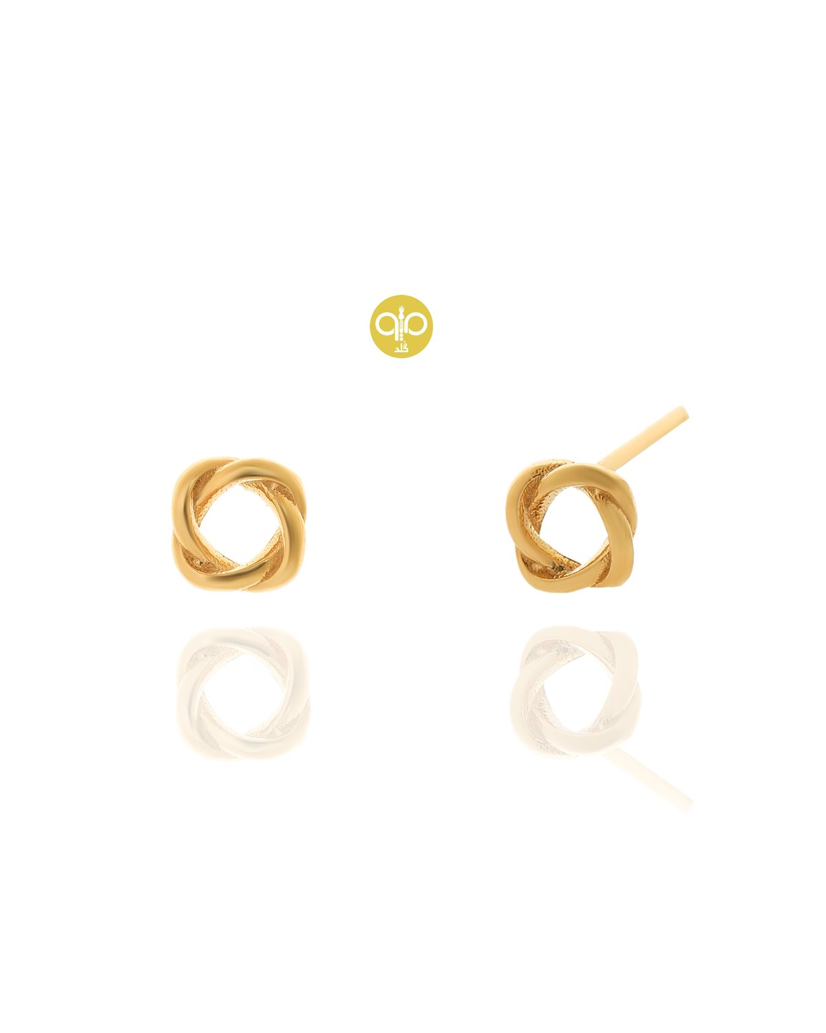گوشواره طلا گره کد E1501 با طراحی نمادین و مینیمال، مناسب برای ترکیب با انگشتر گره یا گردنبندهای ساده.