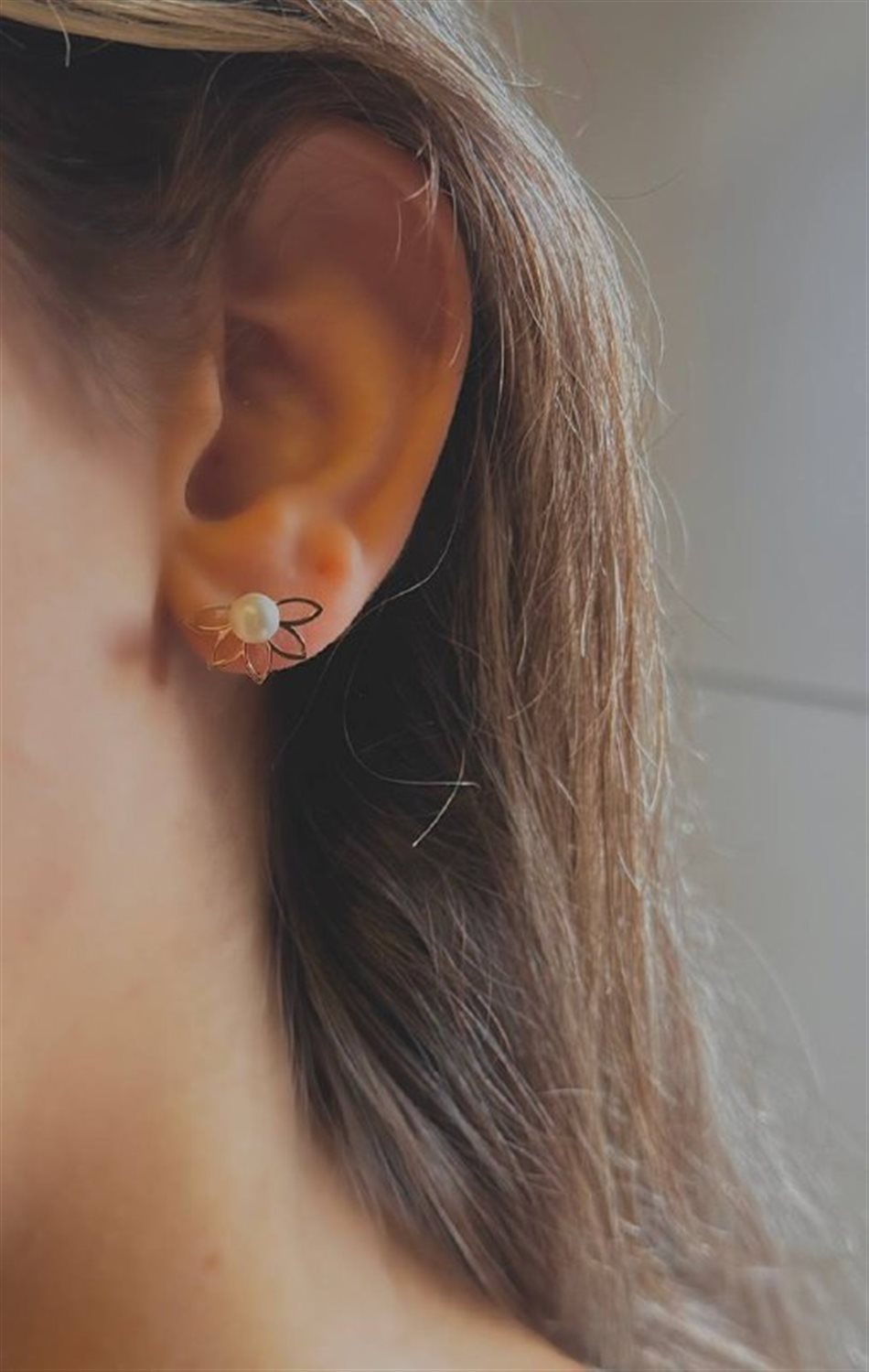 گوشواره طلا لوتوس کد E1364 با طراحی گل نیلوفر، نماد پاکی و زیبایی درونی، انتخابی احساسی و آرامشبخش برای استایلهای مینیمال.