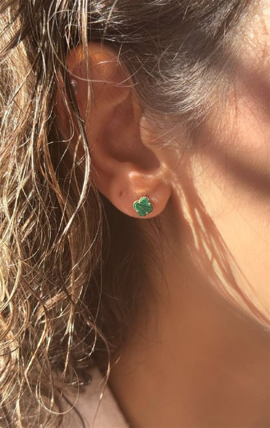 گوشواره طلا ون کلیف کوچک کد E1232 با ابعاد جمعوجور و طراحی گلمانند، مناسب برای استایلهای مینیمال، ظریف و روزمره است.